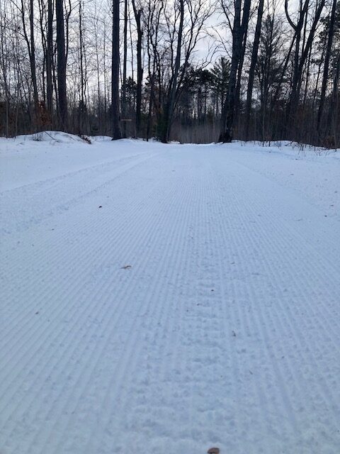 After more snow-moving last night, Groomer Butch is out snowcombing this morning. It looks like Trappers Cabin, Rolling Hills, Blizzard and Adventure trails will be open, but Tall Pines, Manitou and Wild Turkey will be closed due to thin/bare spots. Use caution on downhills. No fresh tracks, but the skate lanes should still be in pretty good shape for both skate and classic, especially