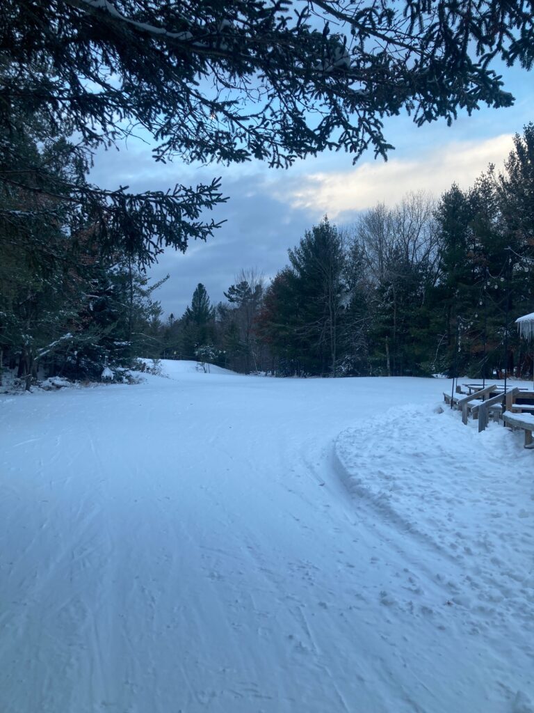 Groomer Mike set fresh tracks last night so they could firm up in the cold temps, and snowcombed the skate lanes this morning and the conditions are excellent! We have about 5-8″ of packed snow on the trails, and 12-15″ in the woods.