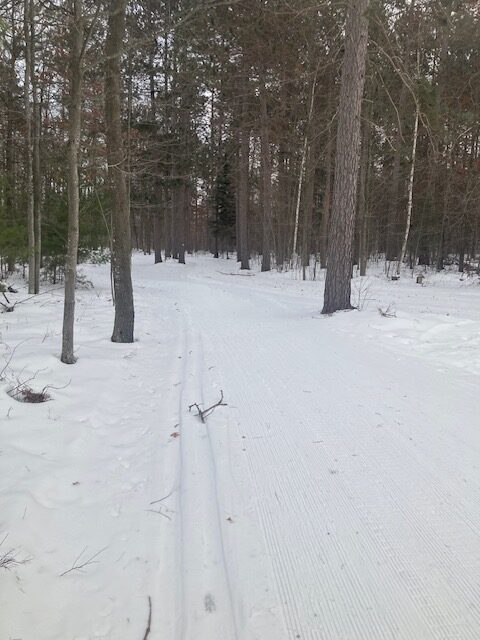 Good morning! Groomer Mike snow combed all the trails this morning, leaving the trail surface very nice. The big debris has been cleared, but there are still little bits of debris down on the trails from the big winds of the last couple days. All trails are open. Classic tracks are in mixed condition, with some parts OK, and some parts washed out and/or