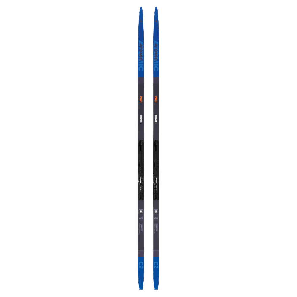 Model years 22/23 and 23/24 available.* Side cut 44-44-44 mm. 188cm (145lbs – 179lbs), 195cm (185lbs – 215lbs), 202cm (190lbs – 215lbs), 202cm Stiff (210lbs – 235lbs), 209cm (200lbs – 225lbs), 209cm Stiff (210lbs – 260lbs). Skis will be hand-selected based on skier’s height, weight and ability level. These skis are perfect for someone who wants a racing classic skin ski without breaking the bank! The Atomic Pro C2 Skintec gives skiers the superb glide of a well-waxed waxable ski, but without the hassle of grip wax. The synthetic mohair grip portion provides precise, ice-free grip, that is consistent in a wide range of snow conditions. Plus, there’s no “zipping” noise like you get with the traditional style grip pattern.