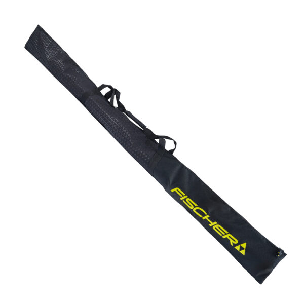 This light weight, durable, 100% Polyester Fischer economy ski bag is great for traveling and protecting your skis. A double zipper makes it a breeze to open and close, and handle straps make for easy carrying. Fits cross country skis up to 210cm in length. Available in Black/Yellow, and in Single Pair or Three Pair.