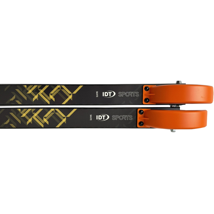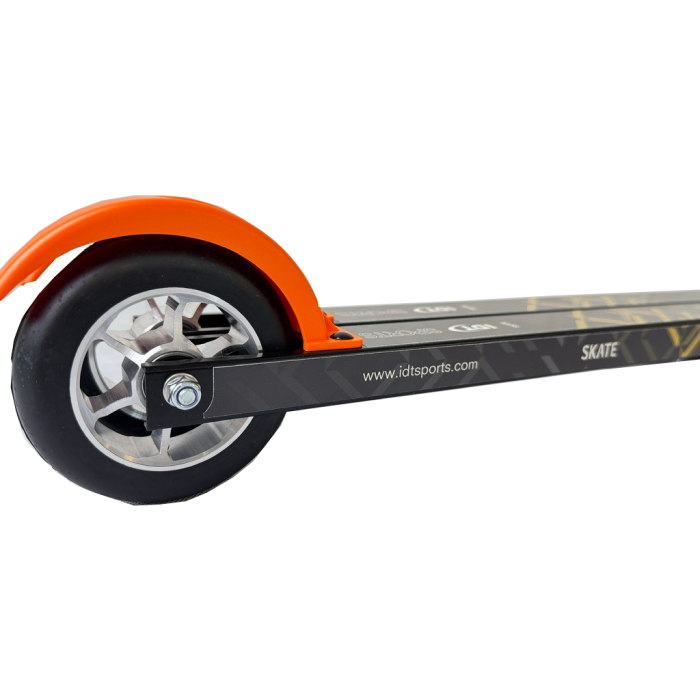IDT Sports Rollerski Skate RM2 w/Binding is the introductory model for those looking to start skating on roller skis or have outgrown their Junior skis. With its 64cm in length and 100% rubber wheels, this ski is perfect for continuing your development or easily getting started with training. Traffic orange mudguard included.
