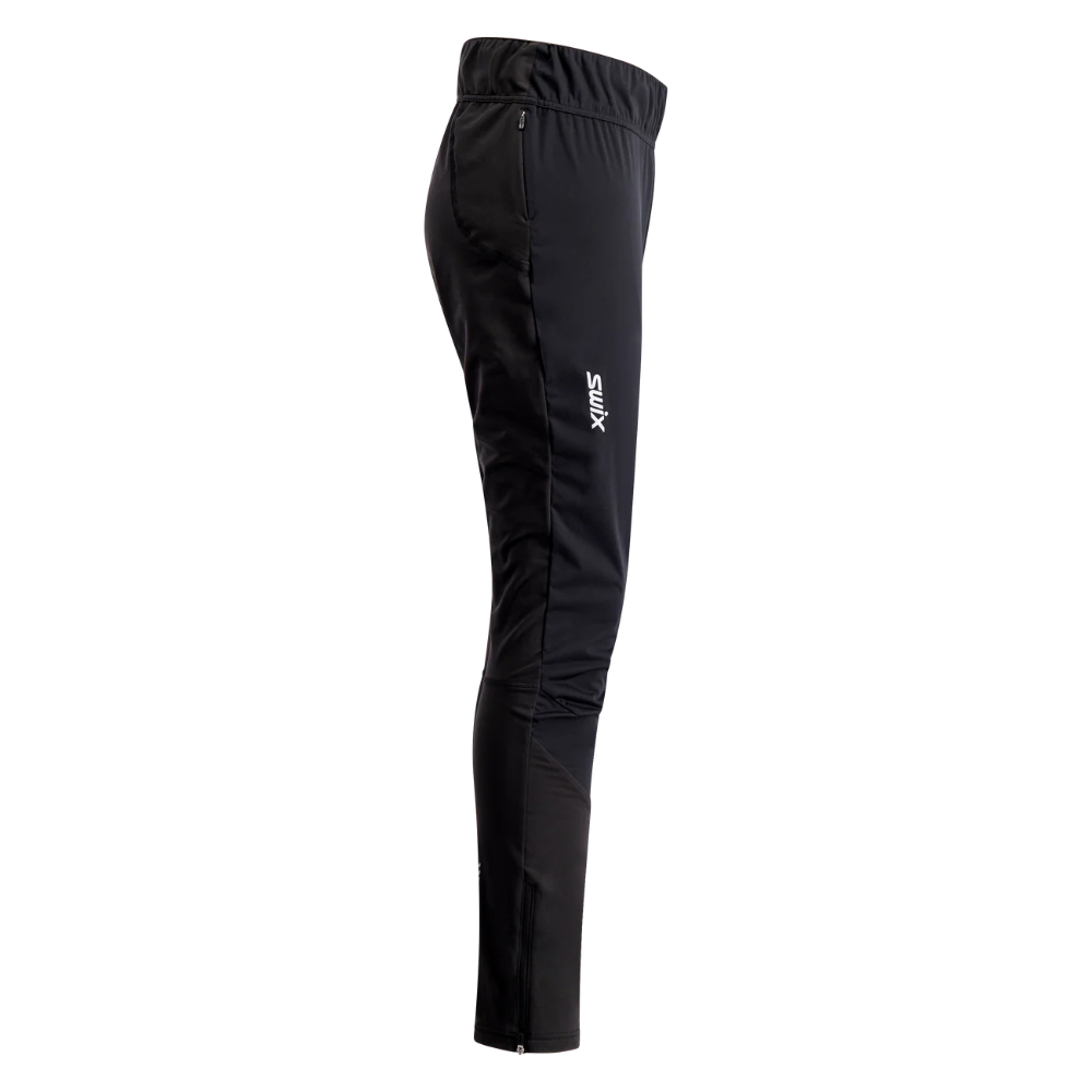 The Swix Focus Wind Pant is designed to maximize your cross country skiing performance. Featuring brushed elastic panels on the back, providing warmth, freedom of movement, and comfort during cold training sessions. The elastic waistband with internal drawcord ensures a secure fit, while the zippered back pocket offers safe storage for small essentials. Convenient leg zippers make them easy to pull on and off over boots. The perfect choice for cross country skiers who value both comfort and efficiency on the track.